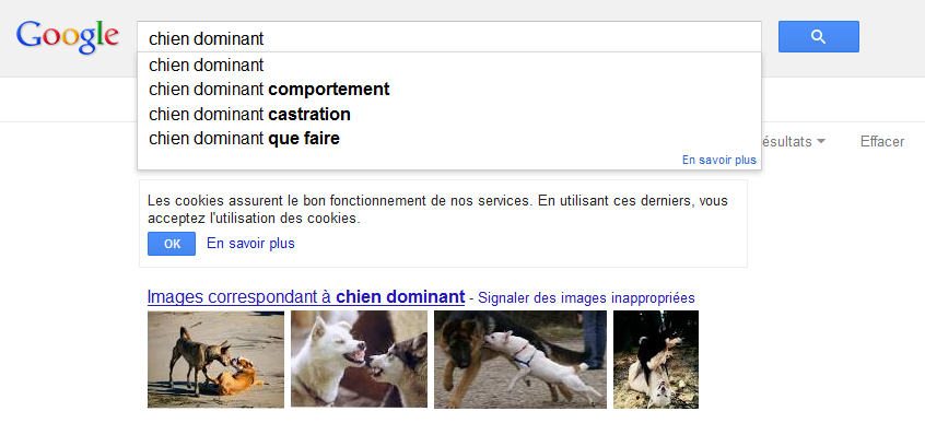 Un premier d’ailleurs que je trouve amusant que lorsque l’on tape “chien dominant” dans Google, les premières images sont majoritairement des images de chiens nordiques. Ils souhaitent alors illustrer la dominance entre les chiens. On parle donc d’un rapport chien-chien mais la dominance concerne aussi le rapport homme-chien. Je vais me servir de ces résultats de Google comme fil conducteur d’une série d’article.