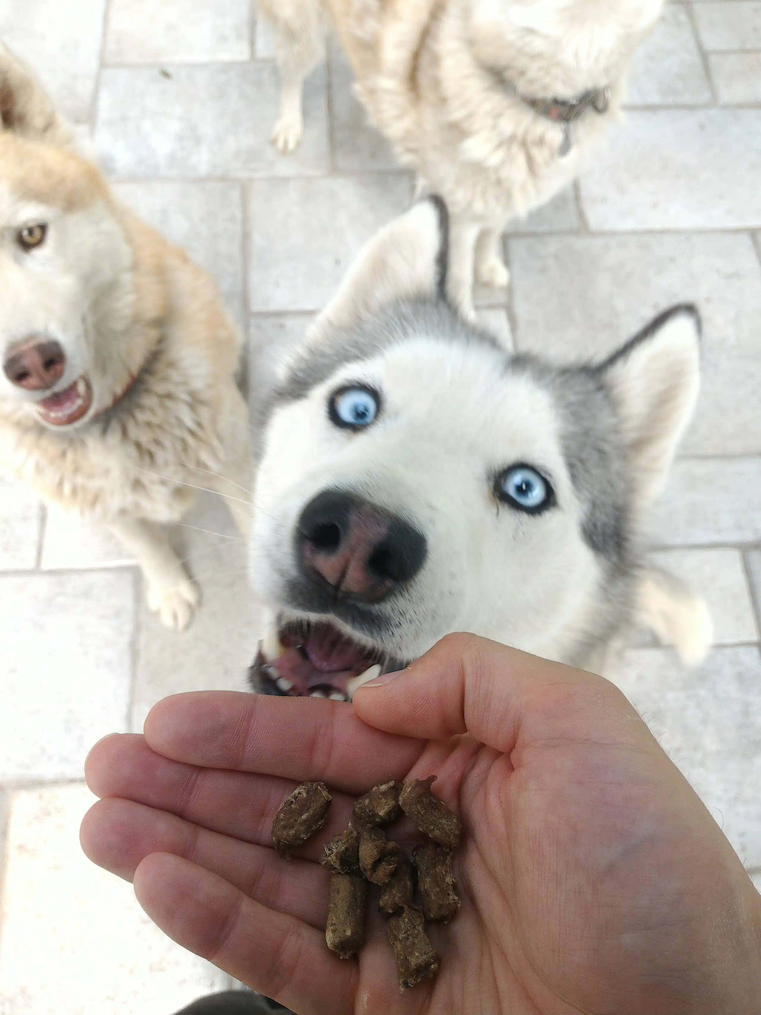 Je suis musher. C’est à dire que j’ai beaucoup de chiens sportifs. D’ailleurs, j’ai toujours vécu avec des chiens. J’utilise régulièrement des friandises pour chien. Dans 3 cas principalement :