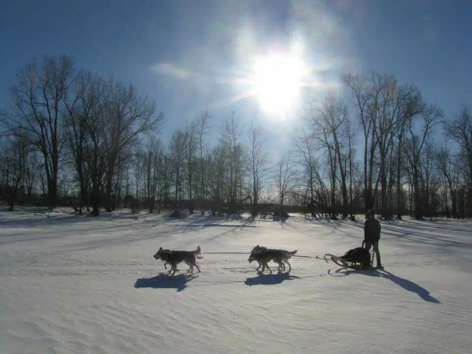 Traîneau à chien: sport canin d’hiver qui consiste à faire du traîneau tracté par 2 à plusieurs chiens.